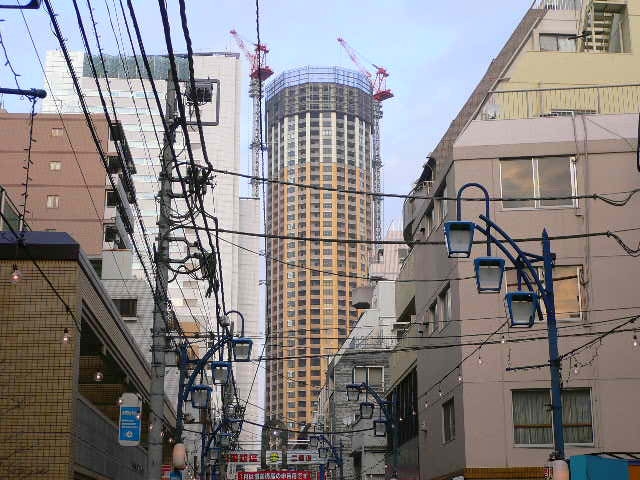 以前、東急線・中目黒駅のガード下の工事のことをご報告しましたが、目黒川沿いの再開発も進み、45階建てのビルの建設が進んでおります。
